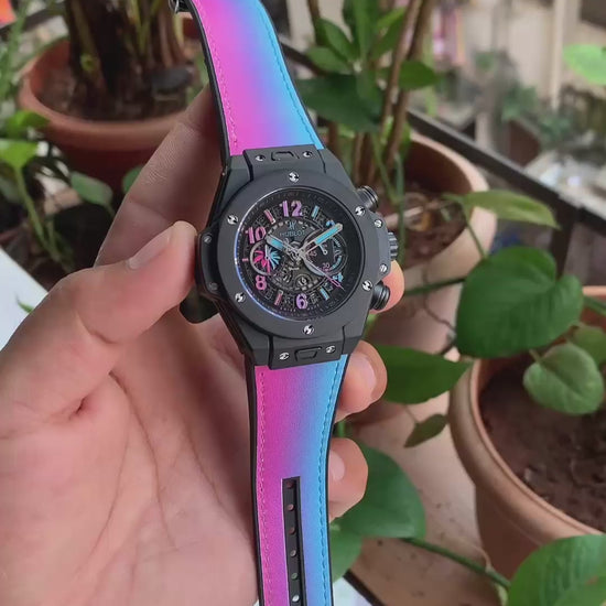 *Miami, a unique and electric city where the vibrant hues of the sunset paint the sky in a spectrum of color, a true muse for Hublot's latest creation β the Big Bang Unico Magic City. A 35 pieces limited-edition timepiece that encapsulates the essence of Miamiβs dynamic spirit.*