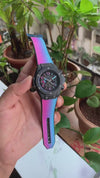 ๐๐ฝ Features: Powered by original Japanese quartz machinery, Stainless-steel black matte finished case with H-Screwed fixed bezel, Anti-reflective sapphire glass on a Black dial with stopwatch chronograph & Multicolour sub-dials, fastened by a high grade Rainbow ๐ camouflage Leather strap with a deployment buckle.