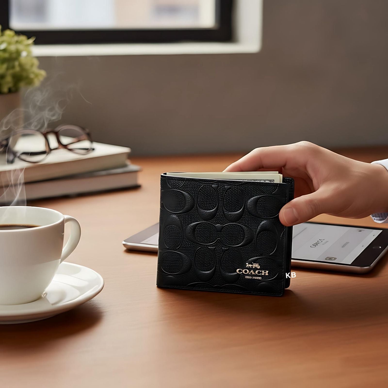 SIGNATURE CC INITIAL EMBOSSED WALLET WITH COACH FITTING*