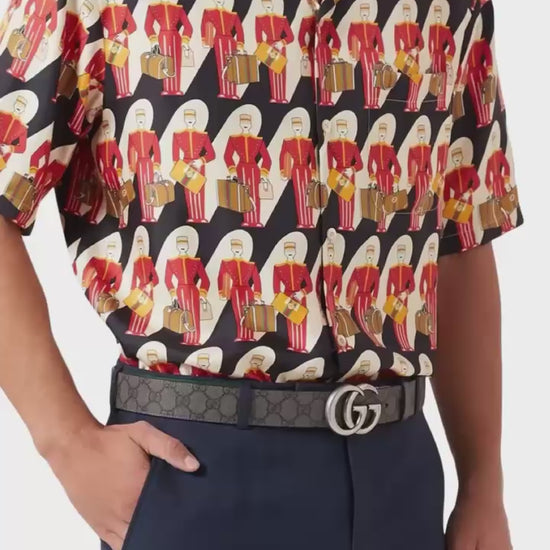 Evolving season after season, this reversible belt blends the iconic GG hardware with a contemporary design. Crafted in grey and black supreme canvas on one side and smooth grey leather on the other, it offers two versatile looks in one accessory. Completed with palladium-toned hardware and a bold double G buckle, this piece redefines timeless elegance.