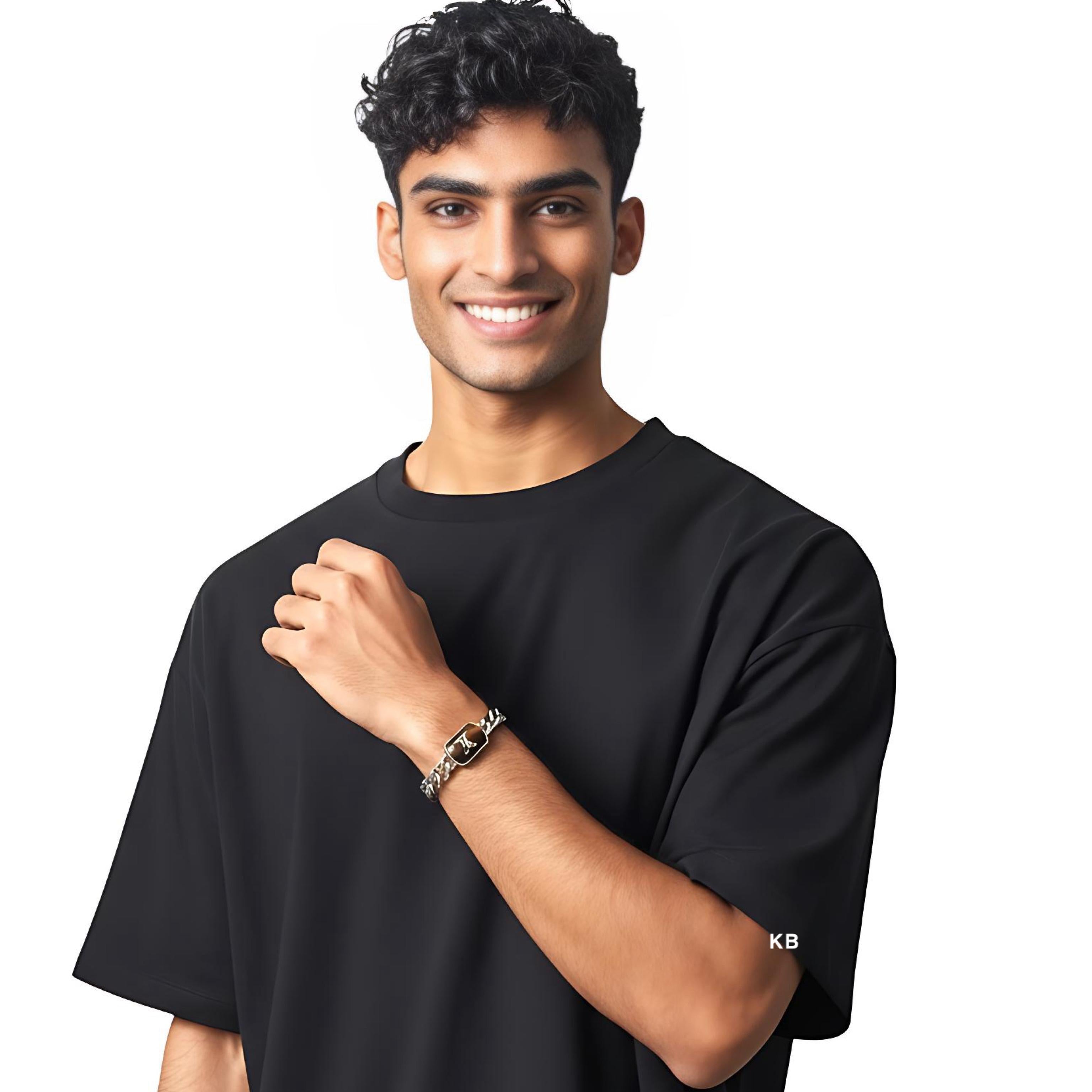 ✨ Men’s Luxury Silver Metal Bracelet | Engraved Monogram Design | Premium Quality ✨