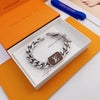 Upgrade your accessory game with this high-quality silver metal bracelet, featuring an engraved monogram pattern and a polished clasp for a sleek, sophisticated look. Perfect for adding a touch of elegance to any outfit.